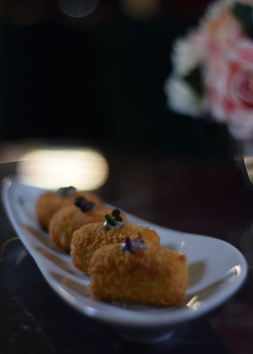 Relleno cremoso con abundante jamón ibérico cubiertas con textura crujiente acompañadas con alioli de aceitunas. -